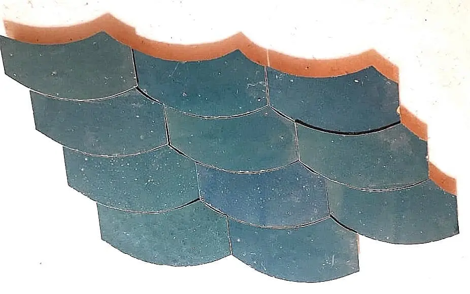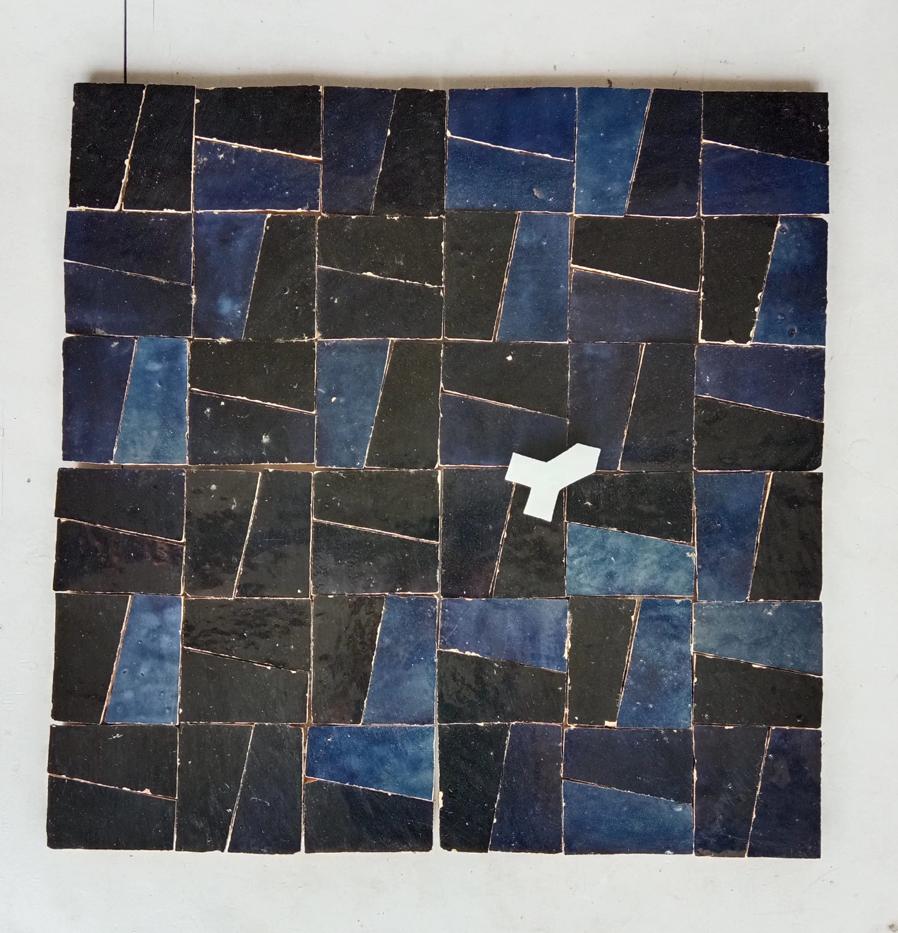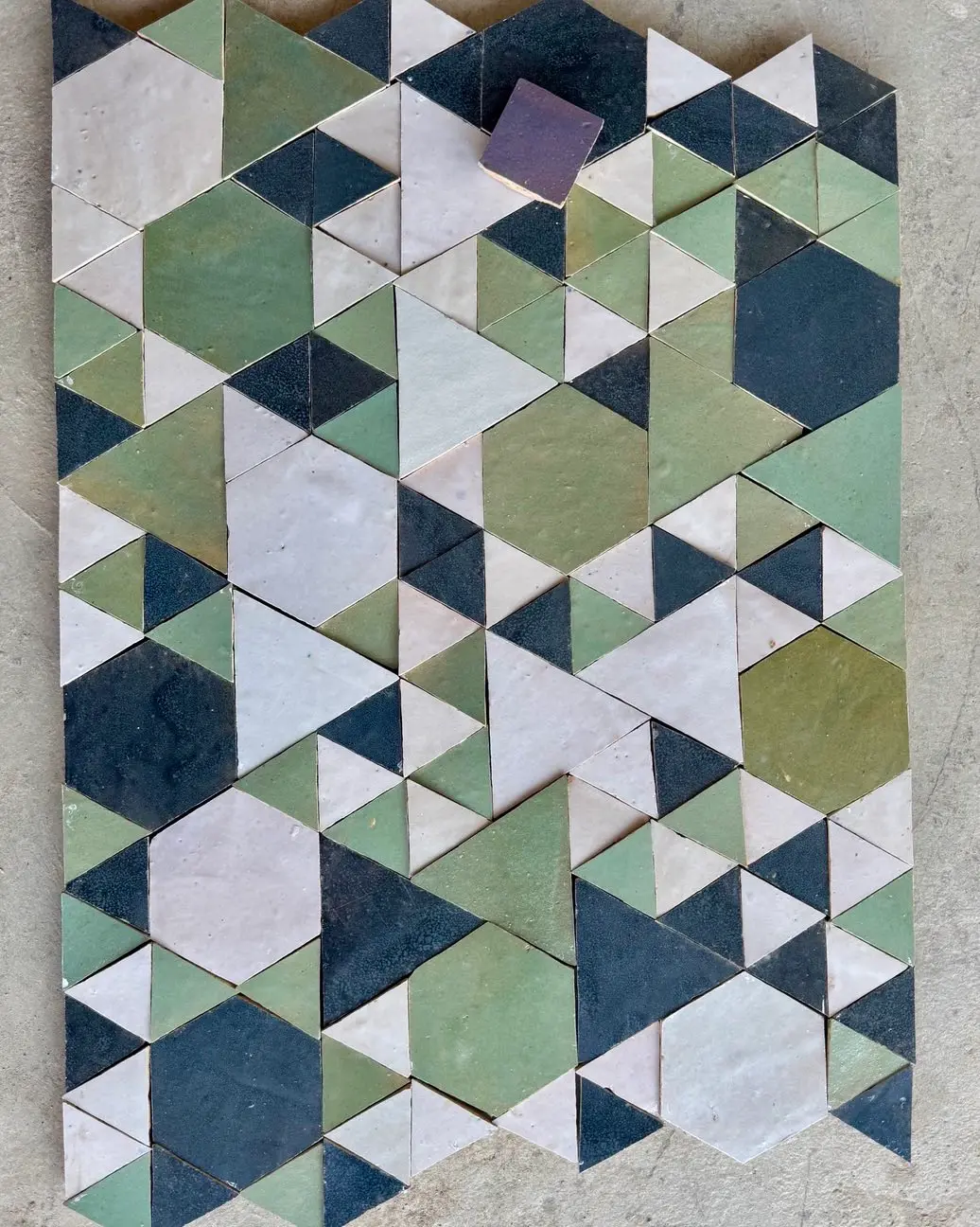 5x5cm Zellige triangular tiles, perfect for creating captivating geometric patterns. Each piece is handmade following ancestral Moroccan traditions.