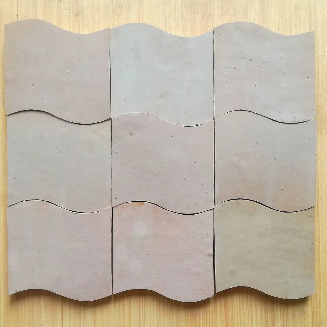 Zellige Wave-B in 10x8cm. A wider version of the Wave model, offering broader, more majestic undulations for captivating wall surfaces.