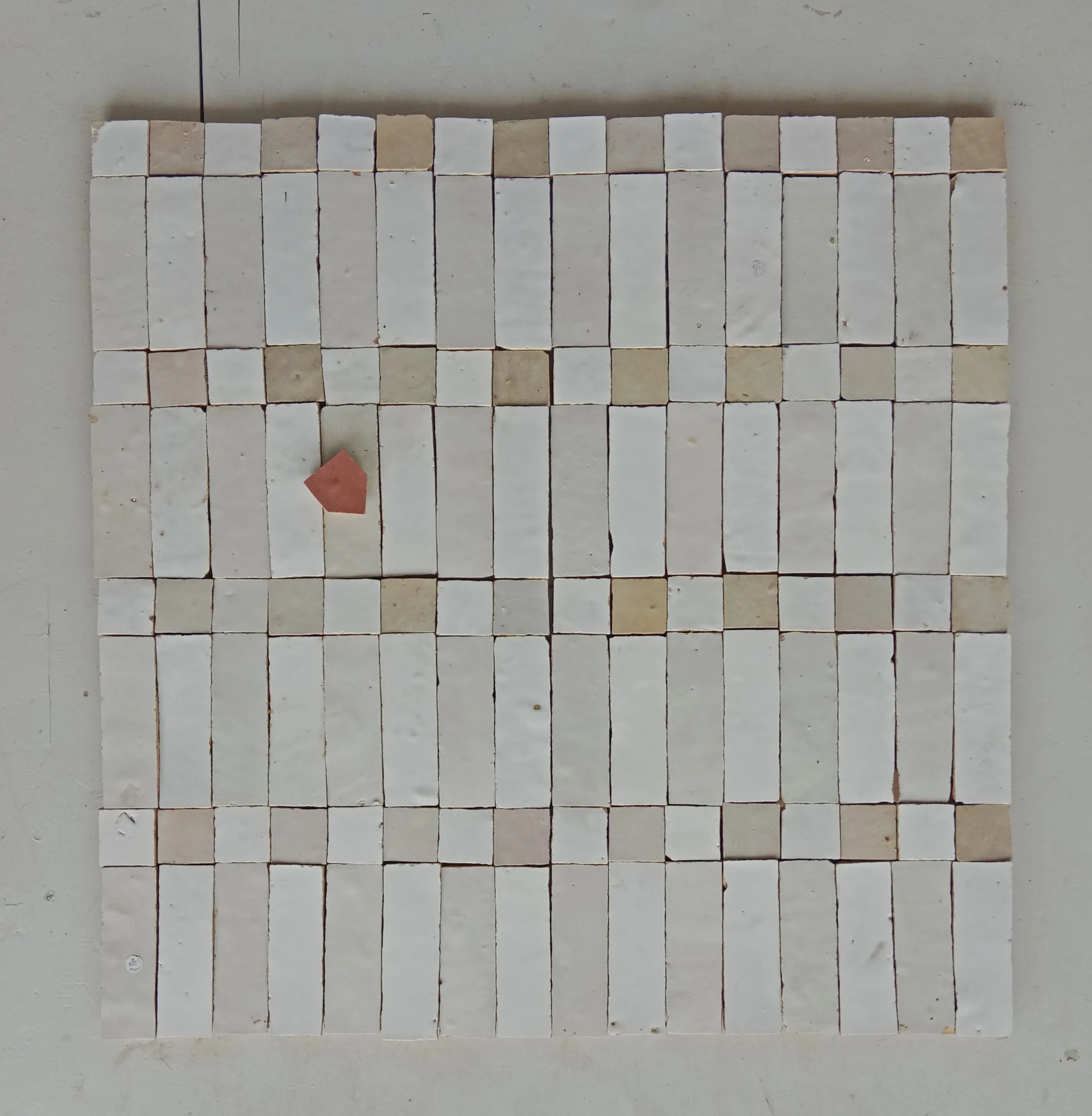 Zellige Windows in multiple formats: 5x5cm, 5x2.5cm and 2.5x2.5cm. These tiles create decorative “window” effects in your mural compositions.